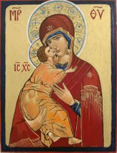 I have always marveled at the artwork on the icons that we have. I have also painted icons, not the way Margaret [Felis] does, not in the traditional way. I used oil paint and did this to teach myself the discipline. [They] are on wood, and varnished, but it is oil paint not tempera. It is like copying the old masters. It’s a learning process. I also feel they are so much a part of myself.