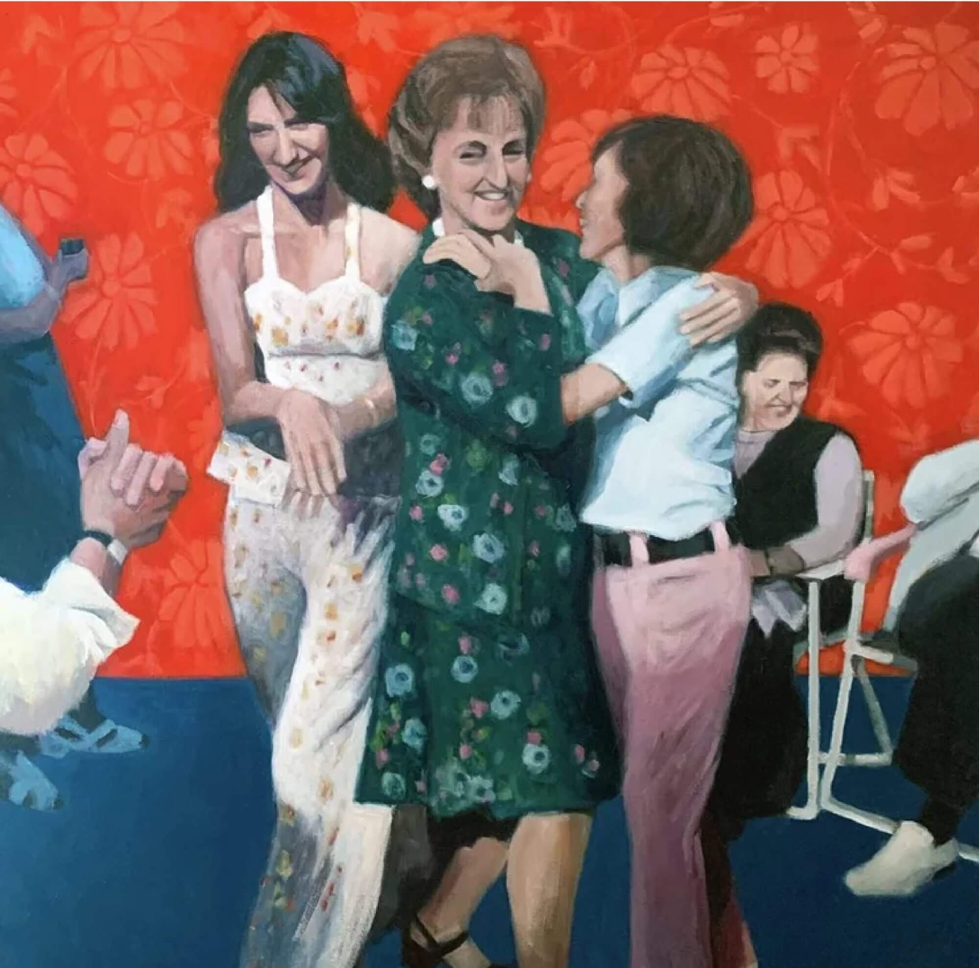 Patricia: Yes! That’s actually my mom, me – I’m on the left – and my younger brother. It was on my parents 25th wedding anniversary. My siblings and I gave them a surprise party at our house in Norwalk. The yard was filled with people and we were [all] together, and somebody took a snapshot. I came upon that photo in my photo box and I thought “I have to paint this.” I remember the day and how happy we all were. I just wanted to paint it as a remembrance of that day. In that photo there’s a hand, on the left side, that’s my father’s arm, he was dancing with my sister. In the background there’s a woman slightly cut off, that was my grandmother. So we’re all in there.  I entered that in a juried show in Pittsburgh through The National Association of Women Artists. The painting is quite large and I normally don’t submit large pieces because of mailing cost but since the show was here in Pittsburgh I decided to submit it. Not only did it get in the show, but the owner bought it for the permanent collection of the Tomayko Foundation. I was quite surprised because it was such a personal family piece.
